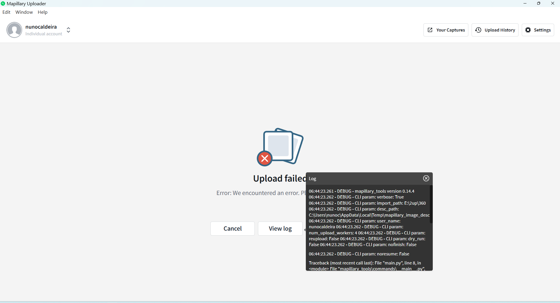 hello, been trying to upload 360 and none 360 imagery. however the result is the same and this error comes up. have tried a clean install, remove my C:\users\xxx\AppData mapillary folders, none of it sorted. can i download an older version of the uploader, searched but couldn’t find it.